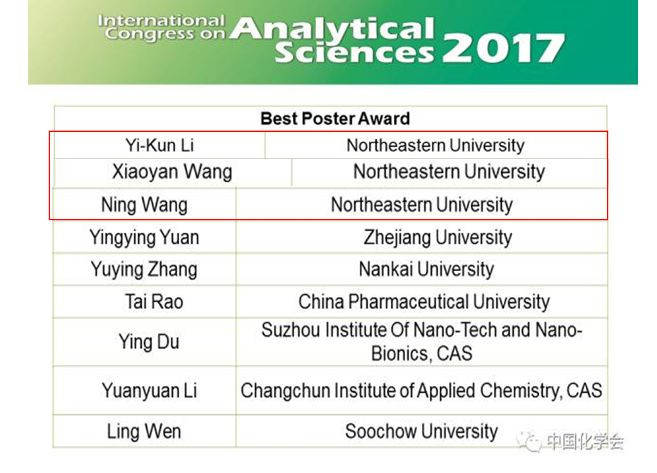 黄瓜视频 化学相关学科王建华教授等师生8人出席了此次会议,并分别作了相关主题报告和口头报告。大会对700多个墙报进行了评审,共评选出61名优秀墙报奖,李轶坤、王晓燕和汪宁三名学生喜获此奖。