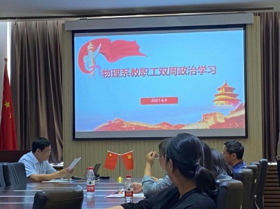 6月9日,物理系在建筑馆211开展了教工政治学习活动,启动了“跟着地图学党史”活动,物理系全体教职工及博士生党员参加了此次活动。