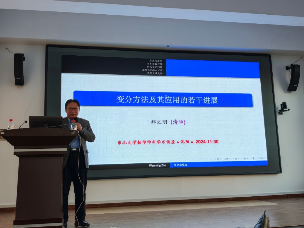报告中,邹文明教授先介绍变分法的历史和展望,然后通俗介绍变分法目前在某些重要PDE方面的应用以及临界指数方程、Bose-Einstein凝聚型方程组、Schrodinger方程的正规化解、不等式稳定性、Moser-Trudinger 不等式等方面的若干进展。随后,邹文明教授介绍了一些没有解决的重要问题。