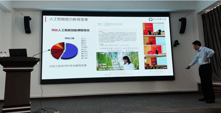 报告中,黄廷祝教授围绕人工智能教育体系的构建及生成式人工智能对课程教学的挑战展开详细阐述。他结合自身丰富的教学与研究经验,探讨适应AI时代的课程教学变革方向,并提出独到的见解。黄教授指出,人工智能技术的快速发展为教育领域带来前所未有的机遇与挑战,教育工作者需积极应对,推动教学模式的创新与优化。