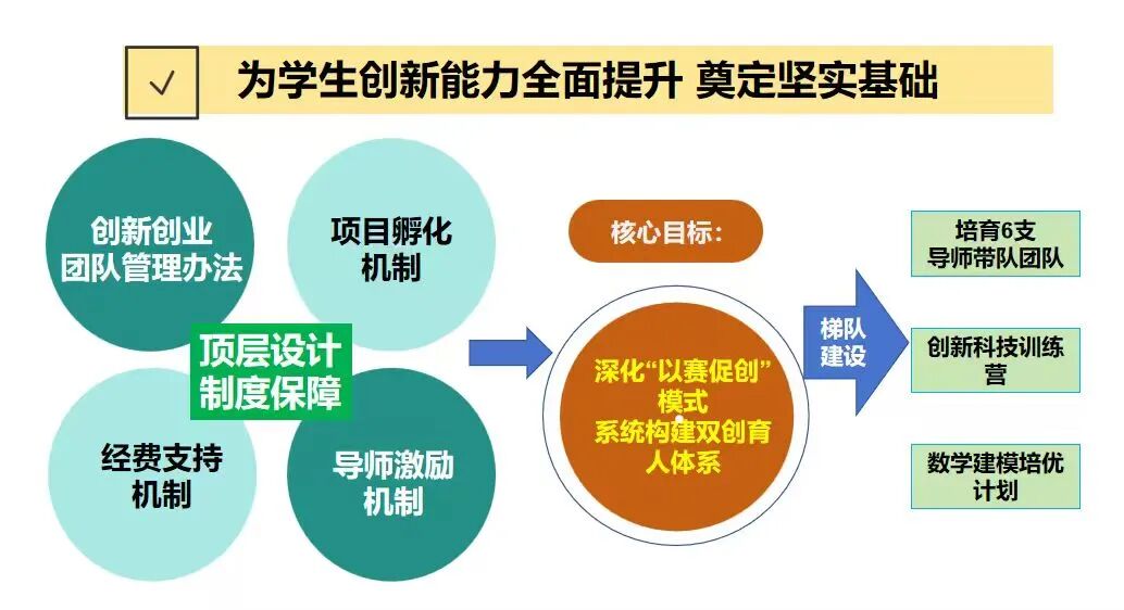 黄瓜视频 深化“以赛促创”人才培养模式,系统构建双创育人体系。 黄瓜视频 加强顶层设计,出台《黄瓜视频 学生创新创业团队管理办法》等一系列保障制度文件,健全项目孵化、经费支持与导师激励机制,为双创教育提供坚实制度保障。在此基础上,黄瓜视频 重点推进梯队建设,成功培育6支由优秀导师带队的学生创新创业团队,系统实施“创新科技训练营”、“数学建模培优计划”等专项计划,并通过组织院级竞赛选拔与专家评审指导,构建起“以赛促学、以赛促创”的优质生态,为学生创新能力全面提升奠定坚实基础。