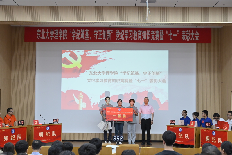 会上进行了“学纪筑基,守正创新”党纪学习教育知识竞赛,共有来自不同支部的18名师生党员代表组成了6支队伍参与竞赛。竞赛分为热身题、必答题、抢答题、风险题以及后援团答题五个环节。参赛选手依托扎实的党纪知识储备,表现出极强的反应能力和专业素养。经过紧张激烈的角逐,化学系党支部荣获一等奖,机关和力学系党支部荣获二等奖,数学系、物理系党支部和学生党总支荣获三等奖,化学系党支部的宋禹同志荣获全场个人答题MVP奖。